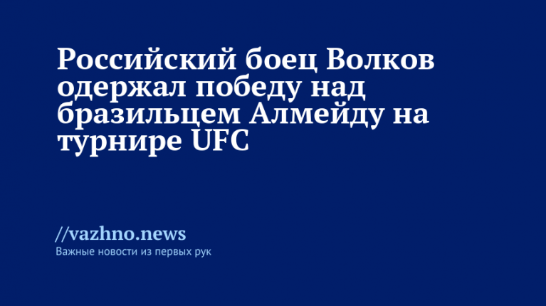 Российский спортсмен Александр Волков одержал победу над бразильцем Жаилтоном Алмейдой в поединке Абсолютного бойцовского чемпионата (UFC) в тяжелом весе. Бой прошел 25 октября в Абу-Даби.