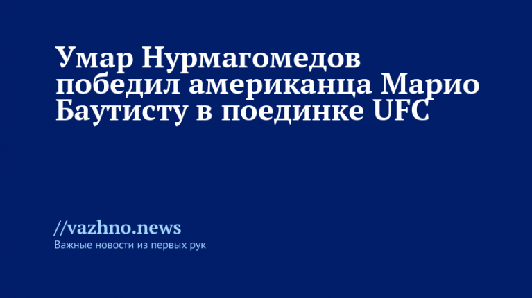 Российский боец смешанных единоборств (MMA) Умар Нурмагомедов одержал победу над американцем Марио Баутистой на турнире Абсолютного бойцовского чемпионата (UFC) в легком весе. Состоявшийся 25 октября бой прошел в Абу-Даби.