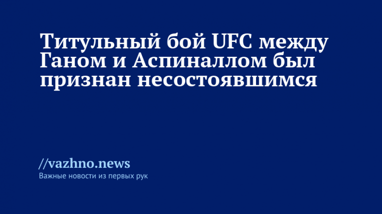 Поединок за пояс чемпиона Абсолютного бойцовского чемпионата (UFC) в тяжелой весовой категории между британцем Томом Аспиналлом и французским бойцом Сирилом Ганом был признан несостоявшимся. Матч прошел 25 октября в Абу-Даби в рамках турнира UFC 321.