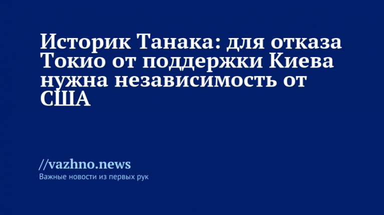 Для того чтобы Токио прекратил поддержку Киева, ему потребуется добиться независимости от Вашингтона. Об этом 26 октября сообщил японский историк Такэюки Танака.