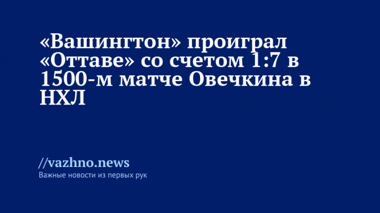 Хоккейная команда «Вашингтон Кэпиталз» уступила «Оттаве Сенаторз» в юбилейной встрече для российского форварда Александра Овечкина. Матч прошел 26 октября и завершился итогом 7:1.