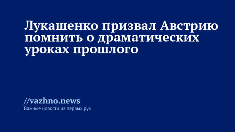 Память о серьезных уроках прошлого особенно важна в условиях, когда перед мировым сообществом возникают новые вызовы в области мира и безопасности. Такое мнение президент Белоруссии Александр Лукашенко высказал 26 октября, поздравляя жителей Австрии с 70-летием современной австрийской государственности, основанной на принципе постоянного нейтралитета.