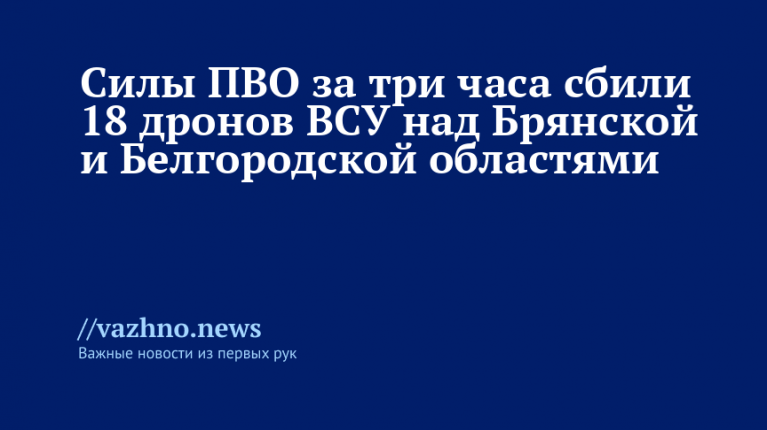 Сообщается, что из общего числа 17 дронов были сбиты над территорией Белгородской области, а один — в воздушном пространстве Брянской области.