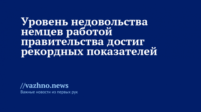 Немецкие граждане демонстрируют беспрецедентный уровень недовольства деятельностью правительства под руководством канцлера Фридриха Мерца. Согласно данным INSA, всего 25% опрошенных оценивают работу федерального кабинета положительно. В то же время 66% выражают неудовлетворенность, что на 3 процентных пункта выше показателей недели назад, сообщает телеканал «Известия».