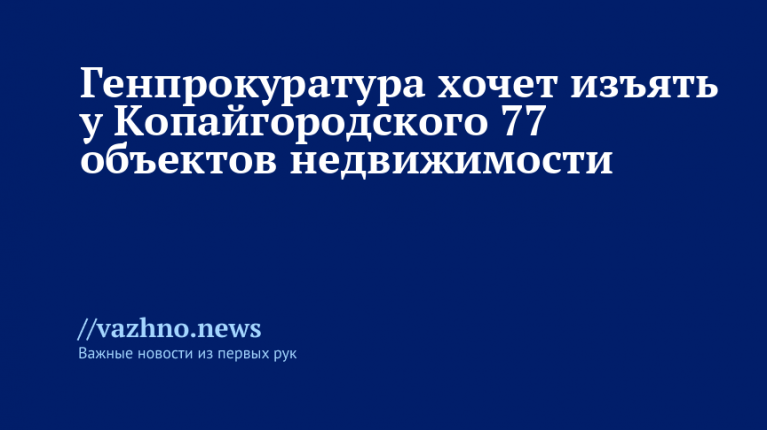 Генеральная прокуратура России потребовала признать собственностью государства имущество бывшего мэра Сочи Алексея Копайгородского, его близких, а также ряда компаний и физических лиц на общую сумму в 1,6 миллиарда рублей. Сообщение об этом появилось 26 октября в издании «Коммерсант».