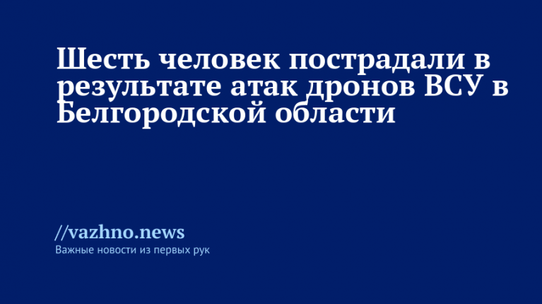 В результате нанесенных беспилотниками ударов со стороны Вооруженных сил Украины по территории Белгородской области пострадали шесть мирных жителей. Об этом стало известно 26 октября из оперативного штаба региона.