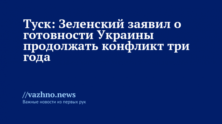 Туск: Зеленский готов продолжать конфликт в Украине три года