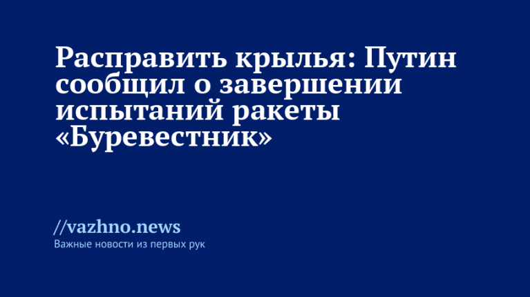 Путин заявил о завершении испытаний ракеты «Буревестник»