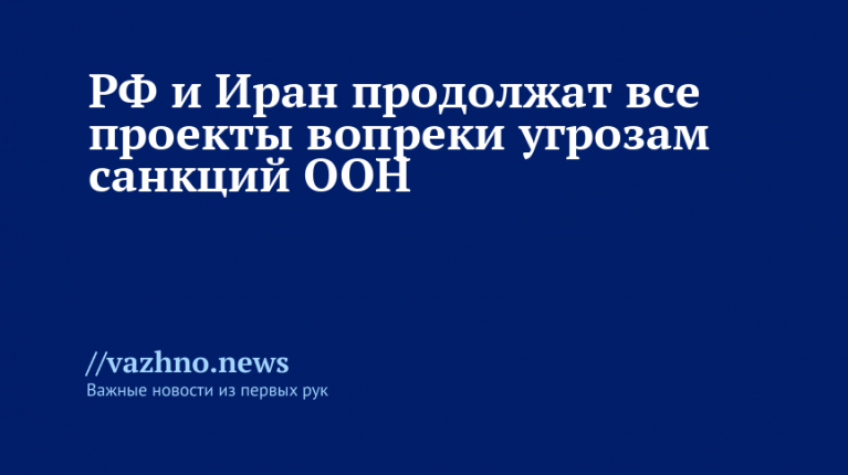 Россия и Иран реализуют проекты в активной фазеМосква и Тегеран намерены поддерживать тесное сотрудничество в ключевых сферах, несмотря на истечение действия резолюции Совбеза ООН 2231 и попытки Запада возобновить санкции в отношении Ирана. Об этом сообщил посол РФ в Исламской Республике Алексей Дедов, подчеркнув, что все совместные инициативы находятся «на стадии активной реализации».