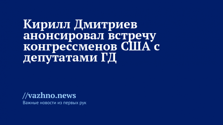 Кирилл Дмитриев анонсировал встречу конгрессменов США с депутатами ГД