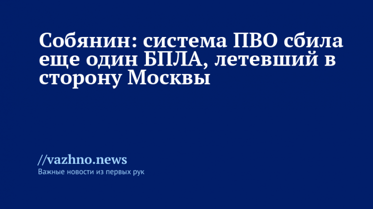 Собянин: ПВО сбила еще один БПЛА, летевший к Москве