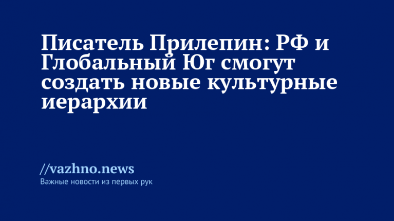 Писатель Прилепин: РФ и Глобальный Юг создадут новые культурные иерархии