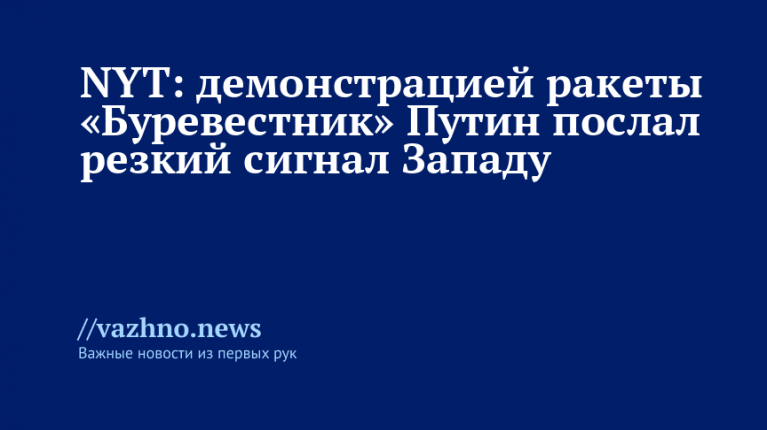 Президент России Владимир Путин с демонстрацией возможностей ракеты «Буревестник» направил мощный сигнал западным странам. Об этом 27 октября сообщила газета The New York Times.