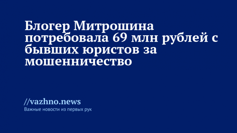 Блогер Александра Митрошина инициировала гражданский иск с требованиями о взыскании 68,6 млн рублей с бывшего адвоката Алисы Волховой и юриста Ольги Гольцевой. Эти претензии предъявлены в рамках уголовного дела, связанного с мошенничеством в особо крупном размере. Информацию предоставил источник «Известий» 27 октября.