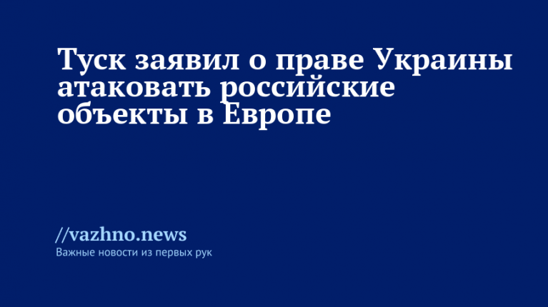 Премьер-министр Польши Дональд Туск выступил с заявлением о том, что Украина вправе осуществлять удары по объектам России, расположенным на территории Европы. Об этом политик рассказал 26 октября в интервью изданию The Times.