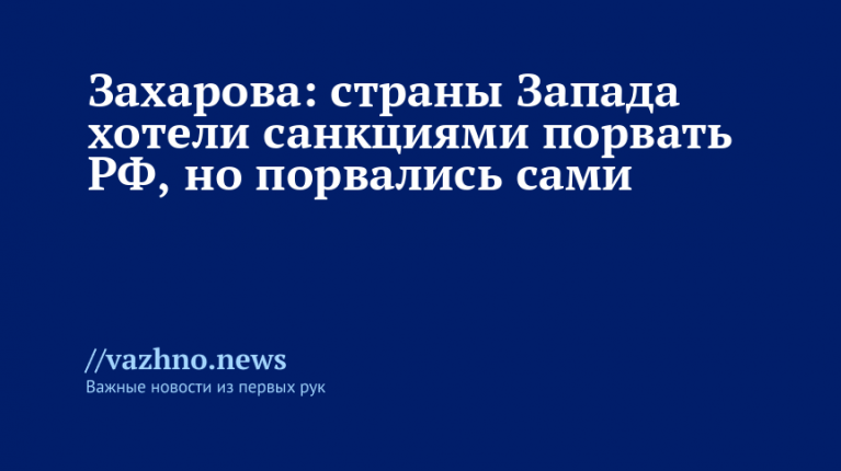 «Начнем с того, что они стремились «порвать» нас, но в итоге «порвались» сами. Посмотрите на экономические данные Евросоюза. Они говорят сами за себя», — подчеркнула дипломат в интервью ТАСС в ответ на утверждения некоторых западных политиков о якобы разрушенной российской экономике.