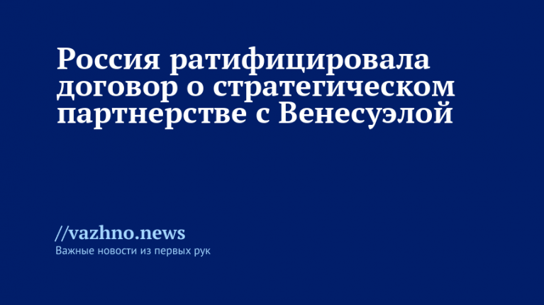 Россия ратифицировала договор о стратегическом партнёрстве с Венесуэлой