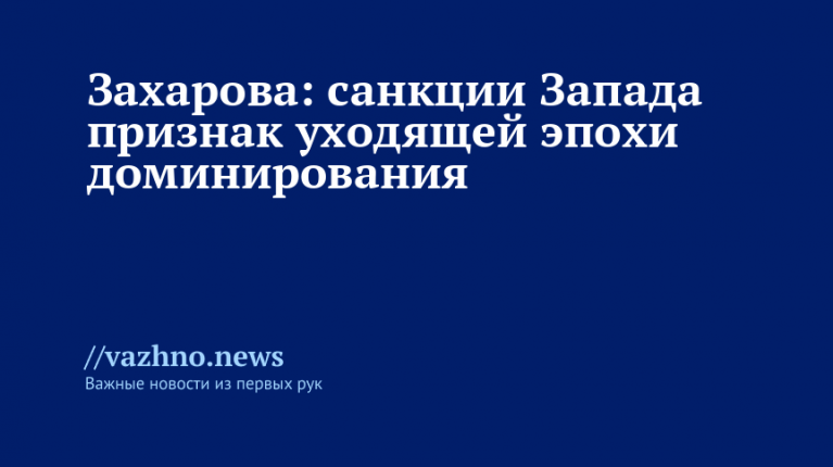 Санкционные меры, введенные против России, отражают завершение эпохи западного превосходства в международных экономических и политических отношениях. Об этом 27 октября заявила официальный представитель Министерства иностранных дел РФ Мария Захарова в интервью ТАСС на мероприятии форума «Сделано в России».