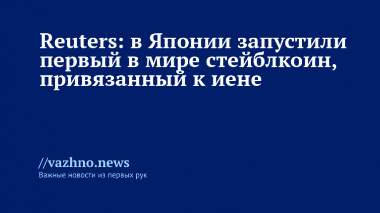 В публикации отмечается, что разработка стейблкоина осуществлена компанией JPYC Inc., которая обеспечила цифровую валюту внутренними резервами и государственными облигациями Японии.