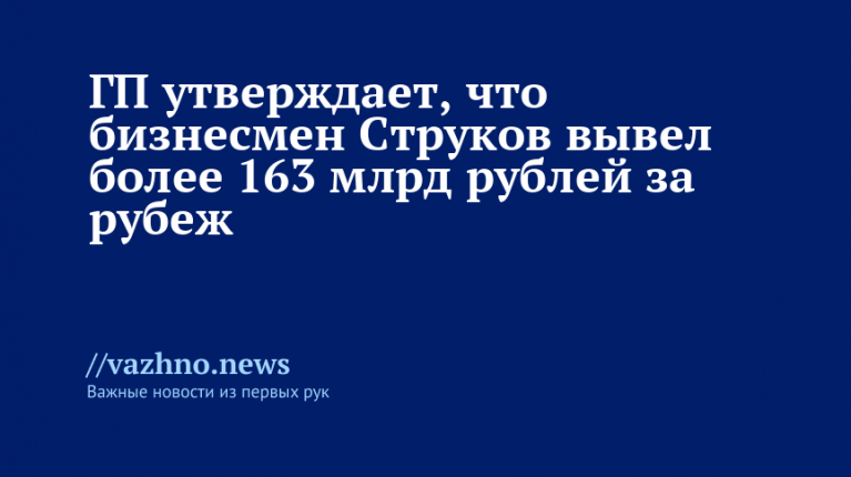 ГП заявляет, что бизнесмен Струков вывел за рубеж свыше 163 млрд рублей