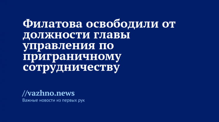 Президент Российской Федерации Владимир Путин принял решение освободить Алексея Филатова от занимаемой им должности начальника управления президента РФ по приграничному сотрудничеству. Указ с этим решением был опубликован 27 октября на официальном интернет-портале правовой информации.