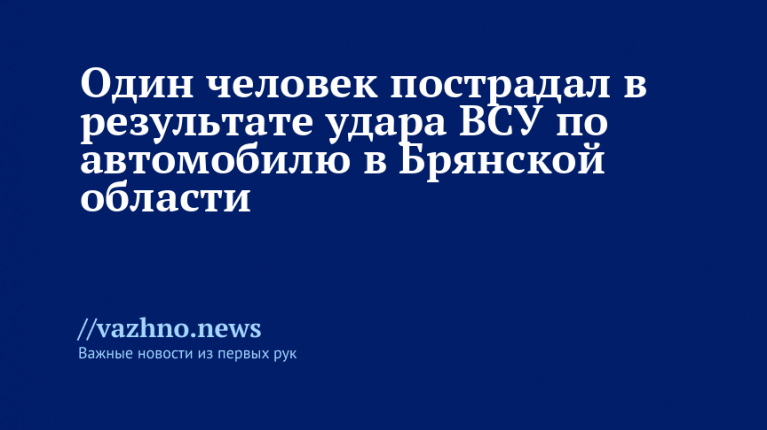 В поселке Погар Брянской области мирный житель получил ранения в результате удара беспилотника (БПЛА) Вооруженных сил Украины (ВСУ) по его автомобилю. Об этом 27 октября проинформировал губернатор региона Александр Богомаз.
