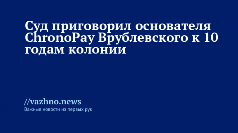 Хамовнический суд Москвы признал основателя компании ChronoPay Павла Врублевского виновным в мошенничестве и приговорил его к 10 годам лишения свободы общего режима. Об этом 27 октября сообщил корреспондент «Известий» из зала суда.