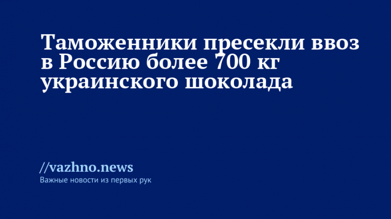 Сотрудники Алтайской таможни остановили попытку ввоза в Россию партии украинского шоколада, на который распространяются санкционные ограничения. Общий вес конфискованной продукции составил 714 кг. Об этом 27 октября сообщила пресс-служба Федеральной таможенной службы (ФТС).
