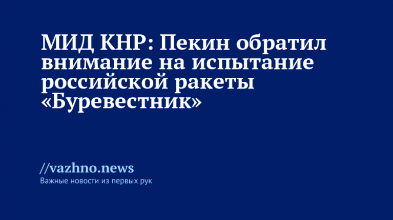 Китайские власти выразили заинтересованность испытанием Россией крылатой ракеты «Буревестник» с ядерным двигателем и неограниченной дальностью полета. Об этом 27 октября заявил официальный представитель Министерства иностранных дел Китая Го Цзякунь.
