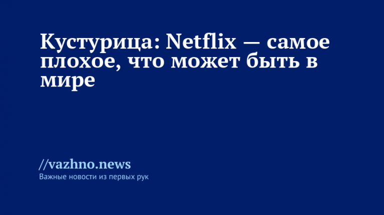 Сербский кинорежиссер Эмир Кустурица 27 октября в интервью «Известиям» высказал мнение, что компания Netflix по значимости может быть сравнима с Голливудом, однако принцип ее функционирования является самым негативным из возможных.