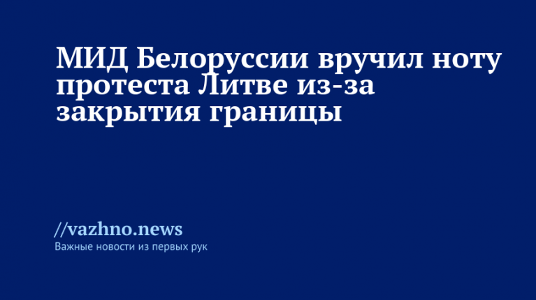Белоруссия направила ноту протеста временному поверенному в делах Литвы Эрикасу Вилканецасу в связи с очередным односторонним закрытием литовской стороной границы без предварительного предупреждения. Об этом 27 октября сообщает пресс-служба белорусского МИДа, отметив, что Вилканецас был вызван в здание ведомства.