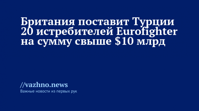 Великобритания и Турция оформили крупнейшую за два десятилетия сделку по экспорту истребителей, стоимостью более $10 млрд, включая поставку 20 боевых самолетов Eurofighter Typhoon. Об этом 27 октября сообщила пресс-служба британского правительства.