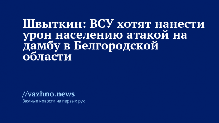 Швыткин: ВСУ планируют удар по дамбе в Белгородской области, угрожая мирным