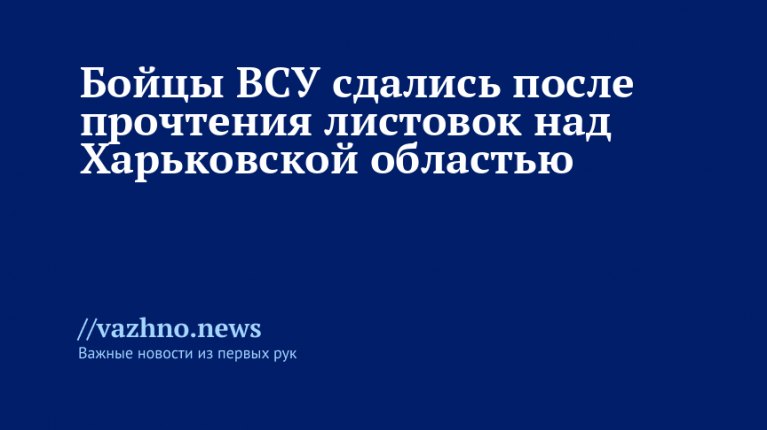 Некоторая часть украинских военнослужащих сложила оружие и сдалась в плен после того, как на их позиции сбросили листовки с призывом прекратить сопротивление. Этот инцидент произошел на фронтовом участке в Харьковской области, неподалеку от населенного пункта Тихое. Об этом 27 октября информировала пресс-служба Минобороны России.