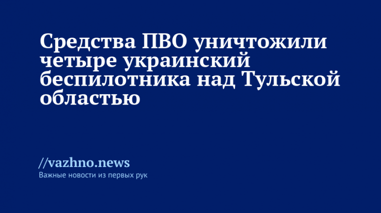 Средства противовоздушной обороны (ПВО) ликвидировали четыре дрона Вооруженных сил Украины (ВСУ) в воздушном пространстве Тульской области. Об этом 27 октября сообщил глава региона Дмитрий Миляев.
