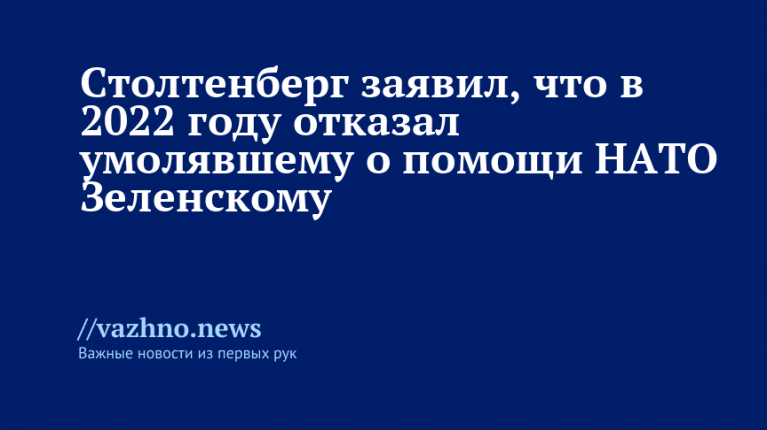 28 октября бывший генеральный секретарь НАТО Йенс Столтенберг рассказал, что в 2022 году отказал в помощи президенту Украины Владимиру Зеленскому, который «умолял» альянс о поддержке.