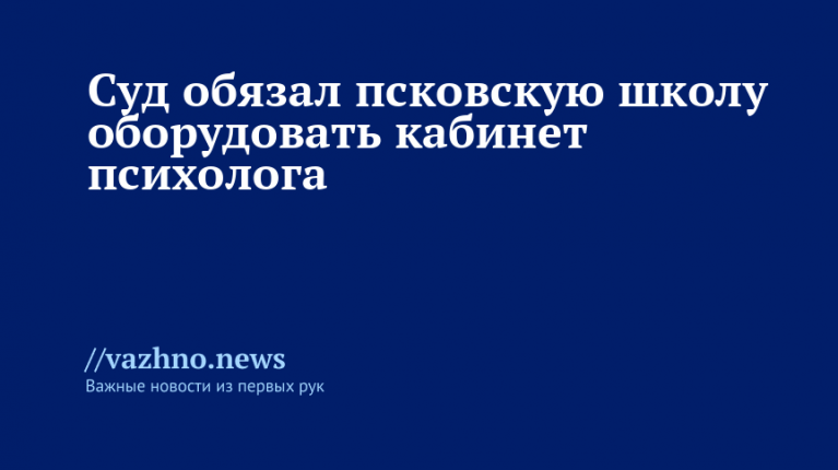 Суд Печорского района Псковской области вынес решение, обязывающее местную администрацию вместе с Харлапковской школой оборудовать кабинет педагога-психолога в деревне Слопыгино всем необходимым. Таким образом, суд полностью удовлетворил требования Палкинской районной прокуратуры.
