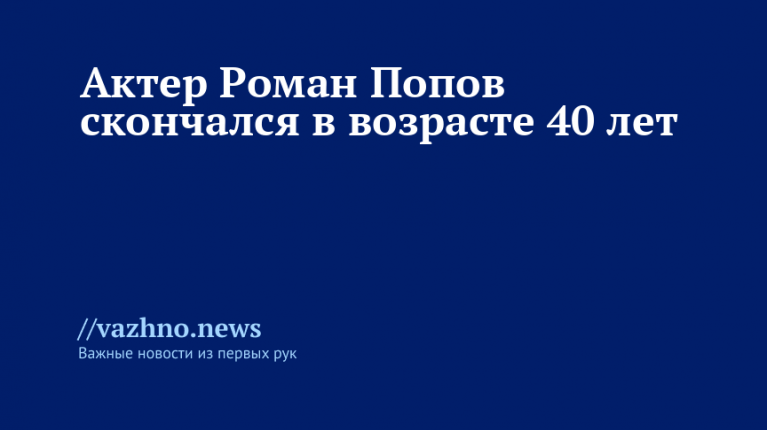 Актер Роман Попов, известный по роли в сериале «Полицейский с Рублевки», умер в возрасте 40 лет. Об этом 28 октября сообщил источник издания «Известия».