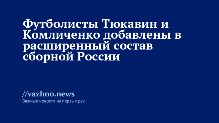 Тренерский коллектив российской сборной по футболу решил добавить двух форвардов — Константина Тюкавина и Николая Комличенко — в расширенный состав игроков, приглашенных на учебно-тренировочный сбор перед играми с командами Чили и Перу. Об этом 28 октября сообщили на официальном сайте Российского футбольного союза (РФС).