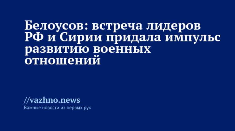 В Кремле состоялась встреча российского президента Владимира Путина с президентом Сирии на переходный период Ахмедом аш-Шараа, что способствовало всестороннему укреплению сотрудничества между военными ведомствами двух государств. Об этом 28 октября заявил министр обороны России Андрей Белоусов на встрече с сирийским коллегой Махрафом Абу Касрой.