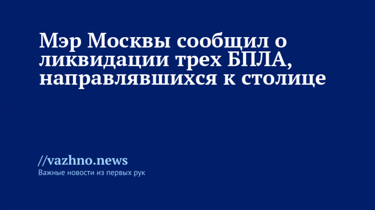 «Тремя беспилотниками, летевшими на Москву, успешно уничтожили силы ПВО Минобороны. На месте падения обломков работают специалисты экстренных служб», — отметил он в своем канале в мессенджере MAX.