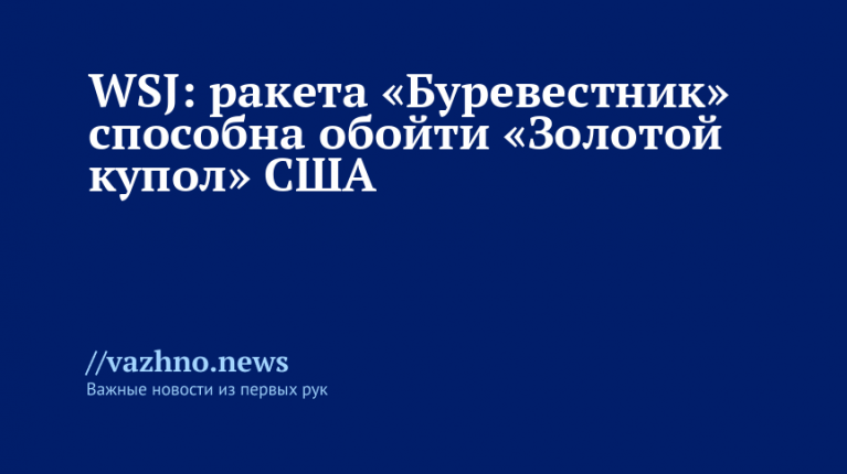 В статье говорится: «Новая ракета представляет потенциальную угрозу для «Золотого купола» — системы ПРО, разработанной для уничтожения межконтинентальных баллистических ракет, которые движутся по траектории значительно выше, чем низколетящая «Буревестник».