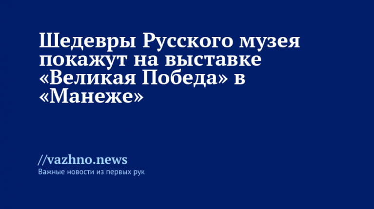 Государственный Русский музей представит на выставке «Великая Победа. Россия — моя история» в московском «Манеже» 18 произведений искусства. Мероприятие пройдет с 4 ноября по 8 декабря. Об этом в своем выступлении 28 октября сообщила генеральный директор музея Алла Манилова на пресс-конференции, посвященной грядущей экспозиции.