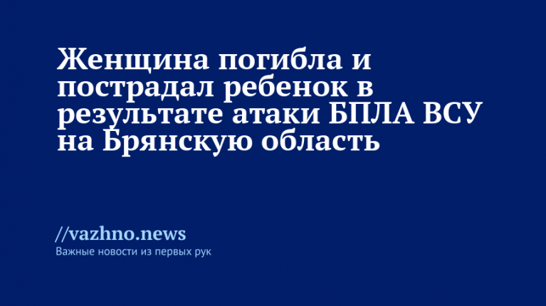 В результате нападения беспилотных летательных аппаратов (БПЛА) Вооруженных сил Украины (ВСУ) на Брянскую область погибла женщина, а также пострадал ребенок. Такая информация была опубликована 28 октября губернатором региона Александром Богомазом.