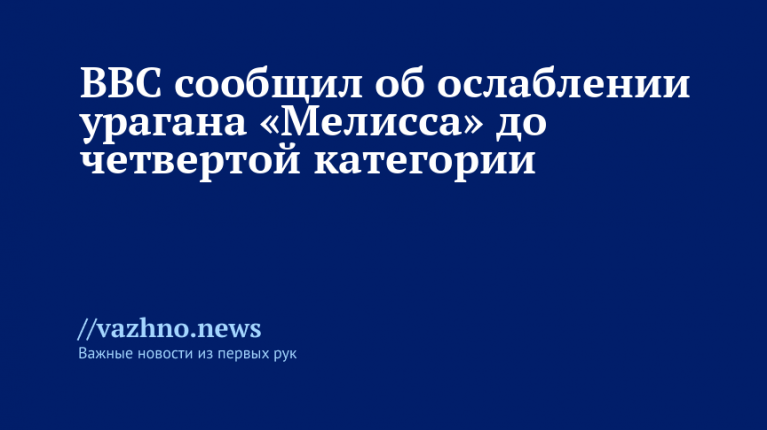 Ураган «Мелисса» снизил свою интенсивность до четвертой категории и перемещается из Ямайки в направлении Кубы. Об этом сообщил телеканал BBC.