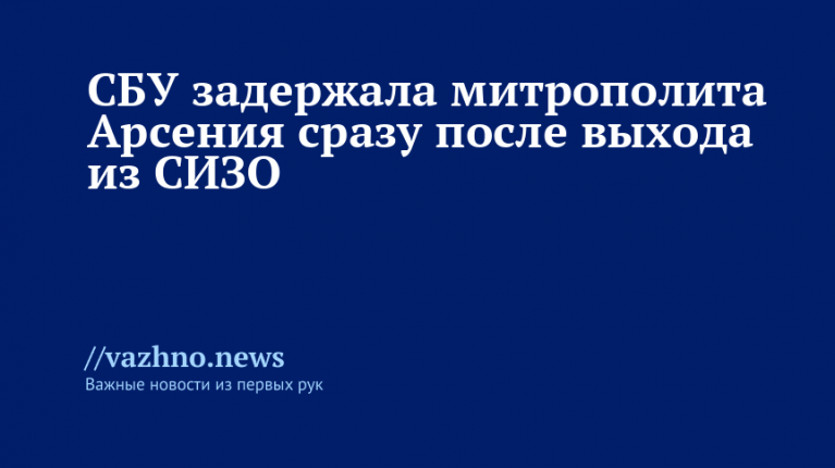 Митрополита Арсения освободили из следственного изолятора (СИЗО), однако сразу после этого его задержали сотрудники Службы безопасности Украины (СБУ) по новому подозрению. Об этом 28 октября сообщила в своем Telegram-канале организация «Союз православных журналистов».