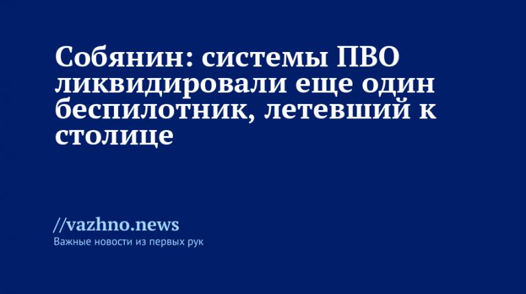 «Уничтожен еще один вражеский БПЛА, летевший на Москву», — написал он в своем канале в мессенджере MAX.