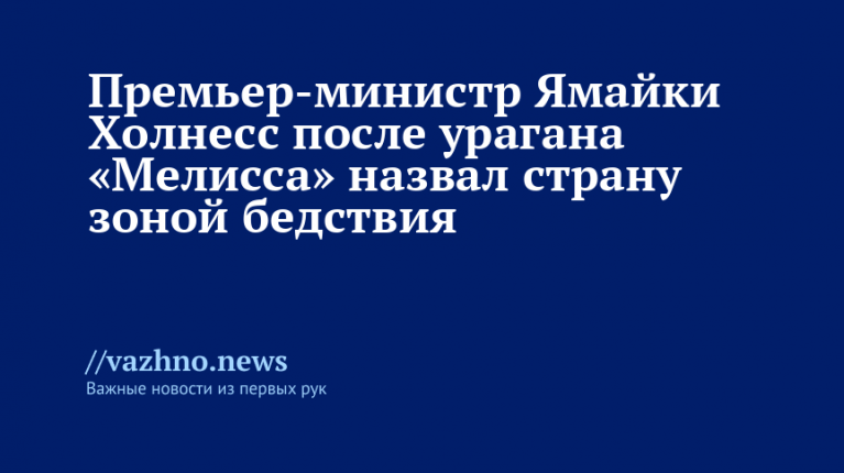 Премьер-министр Ямайки Эндрю Холнесс объявил страну зоной бедствия после того, как ураган «Мелисса» прошел через регион. Об этом он сообщил 28 октября в социальной сети Facebook (принадлежит компании Meta, деятельность которой признана экстремистской и запрещена в РФ).
