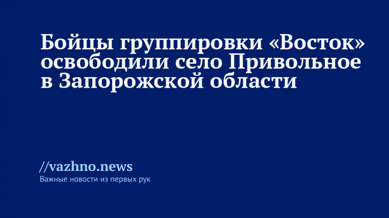 Военнослужащие группировки войск «Восток» успешно освободили населенный пункт Привольное, расположенный в Запорожской области, продвинувшись вдоль западного берега реки Янчур и захватив под контроль оборонительный участок противника длиной 3,5 км. Об этом 29 октября проинформировали в Минобороны РФ.