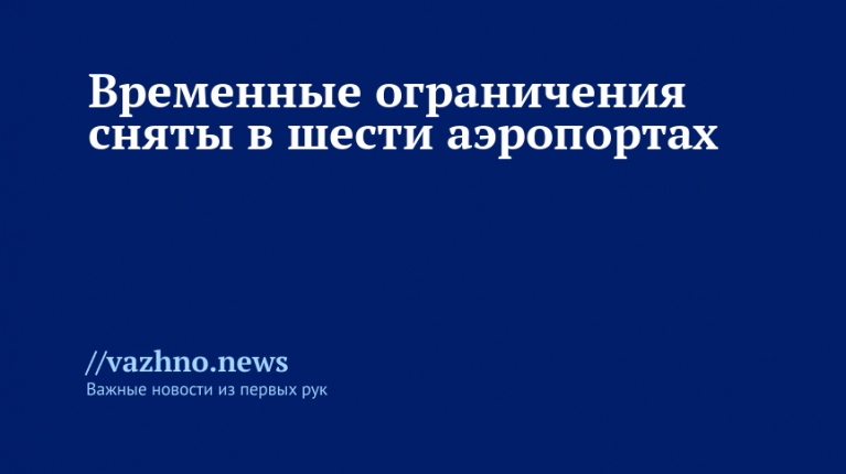 «Аэропорт Волгоград. Геленджик. Казань. Краснодар (Пашковский). Ульяновск (Баратаевка). Чебоксары. Ограничения на прием и выпуск воздушных судов сняты», — отметил он в своем Telegram-канале.